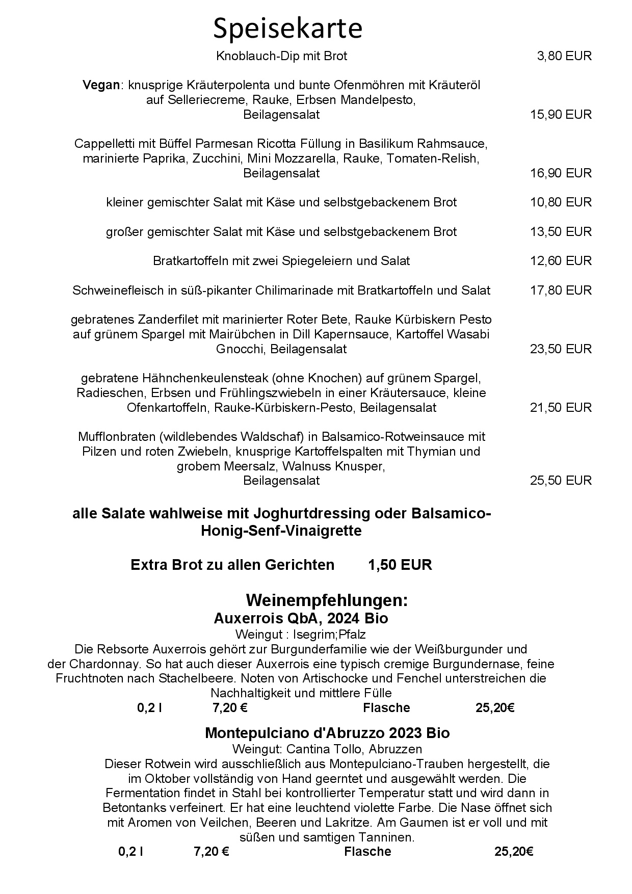 darüber hinaus passende Weine, zusätzliches Geschirr und Besteck,